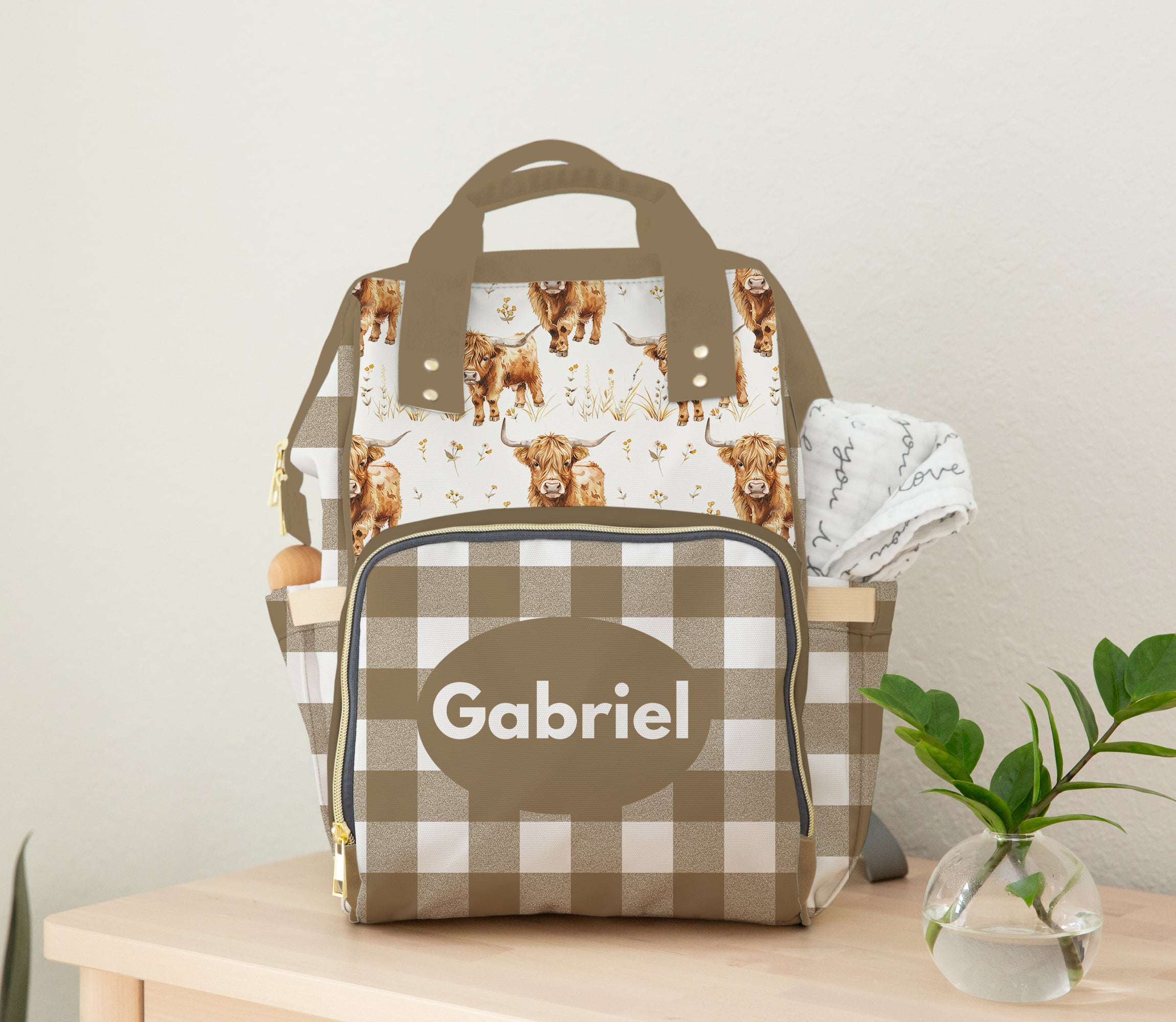 DIAPER BAG BACKPACK - PERSONALIZED NEUTRAL GINGHAM