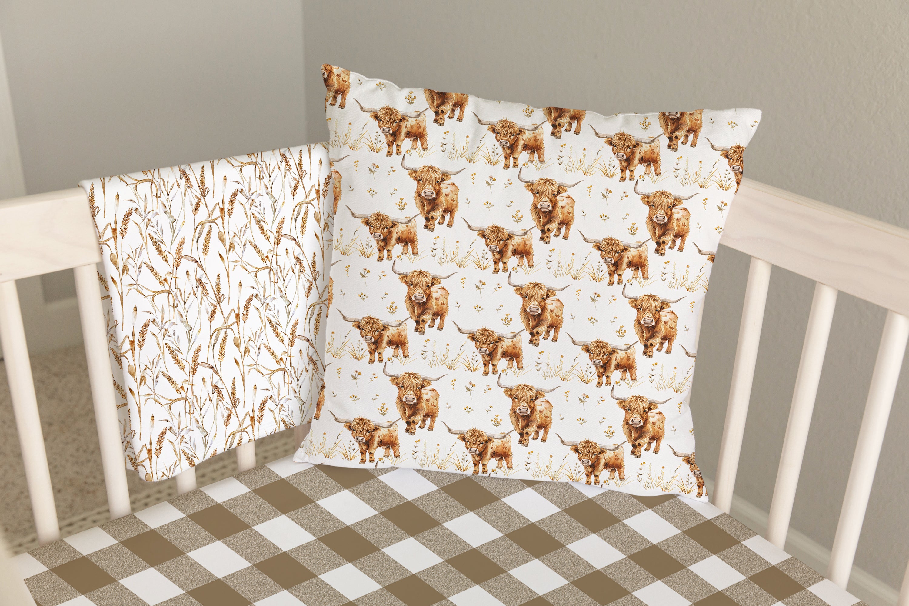 CRIB BEDDING - NEUTRAL GINGHAM BIRDS