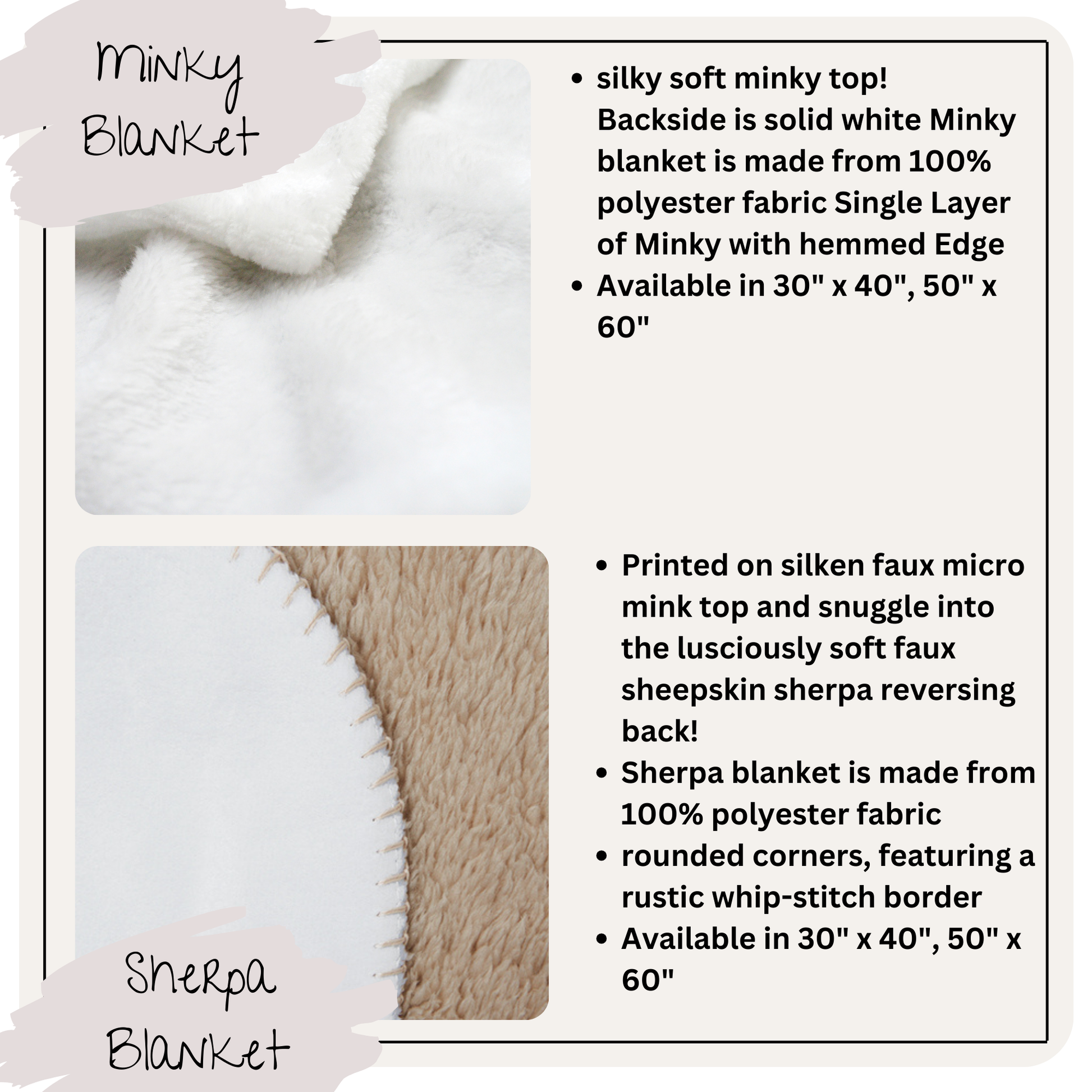 *Material: printed side is micro minky fleece, backside is solid sherpa fleece, 100% polyester fleece