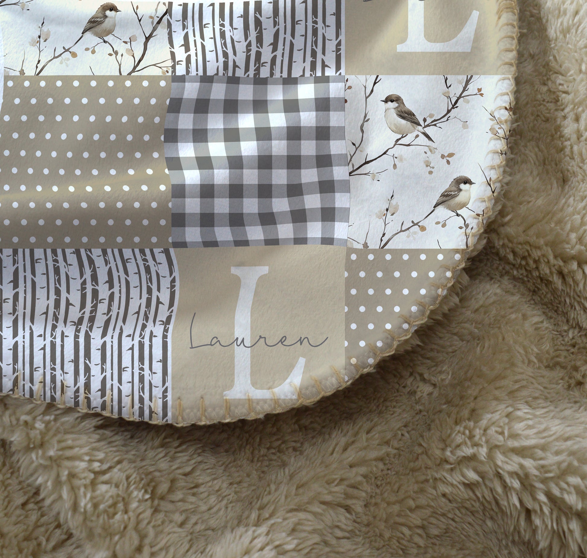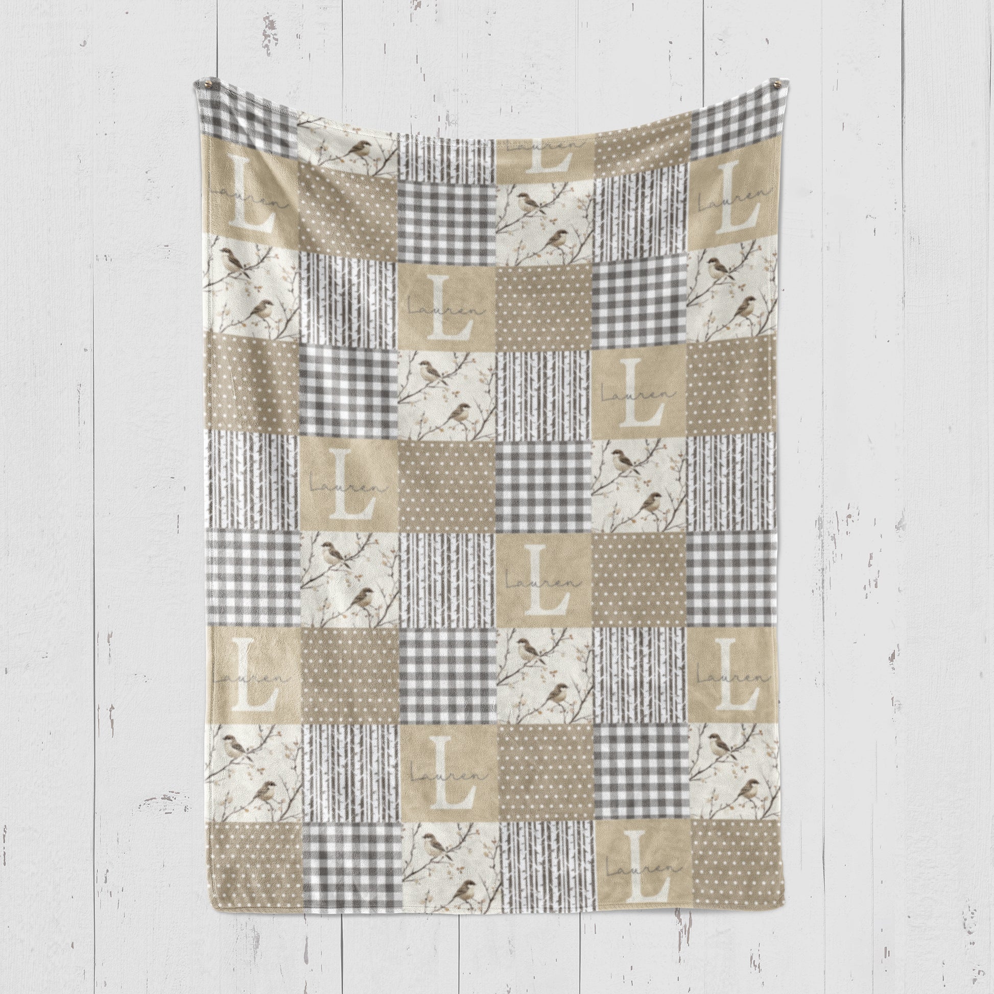 BLANKET - NEUTRAL GINGHAM BIRDS