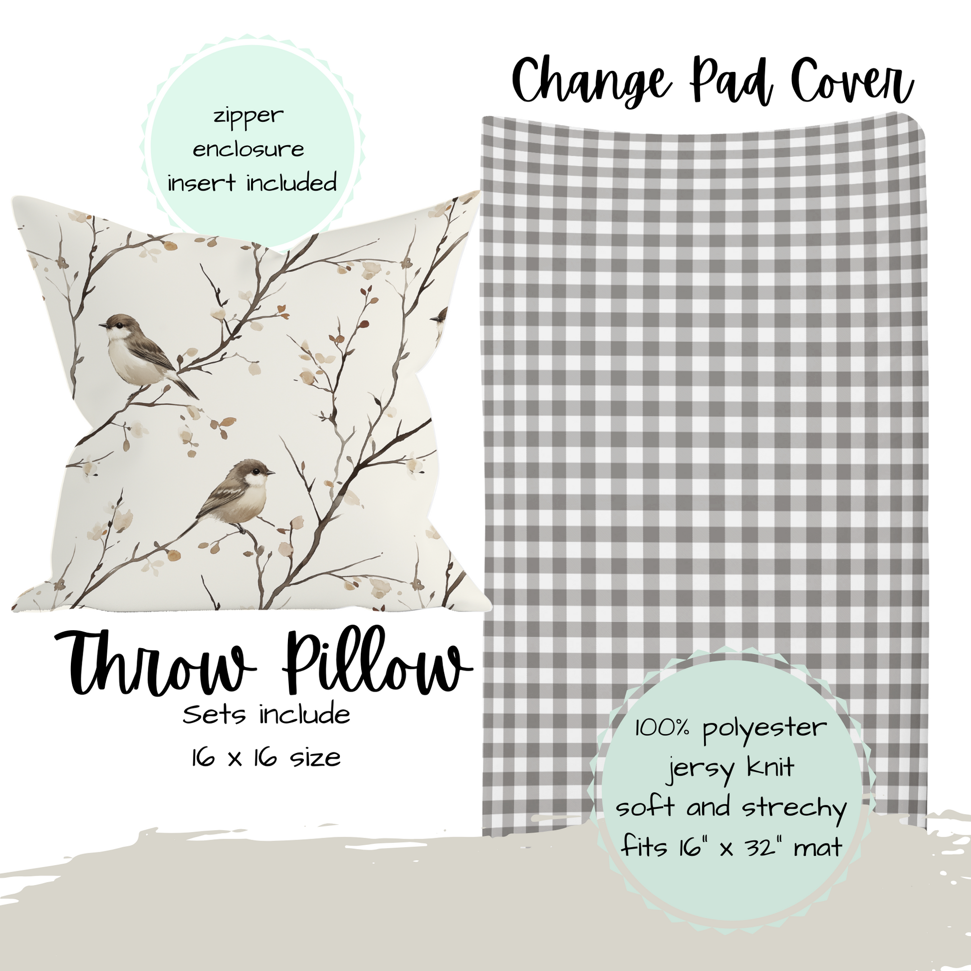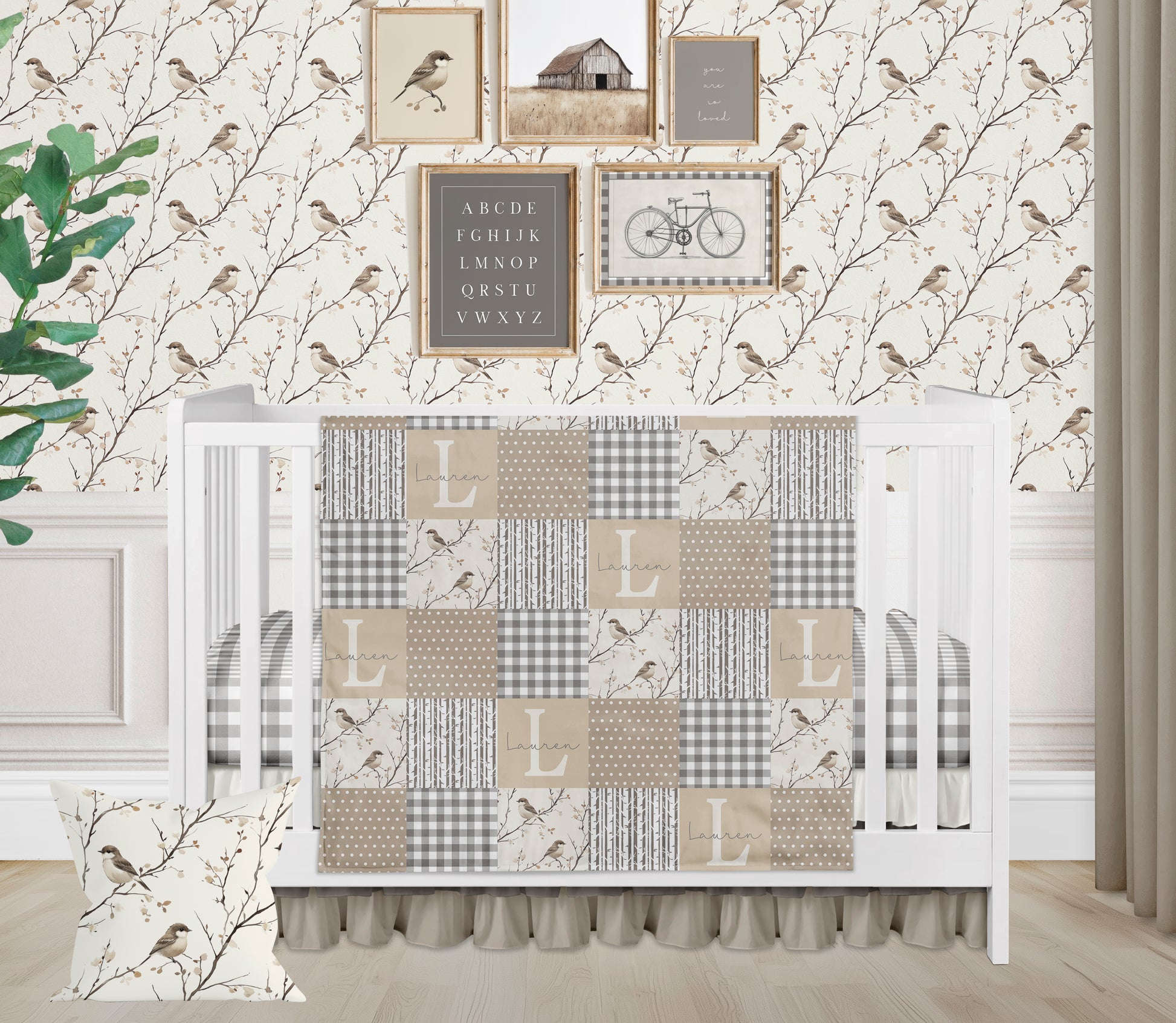 CRIB BEDDING - NEUTRAL GINGHAM BIRDS