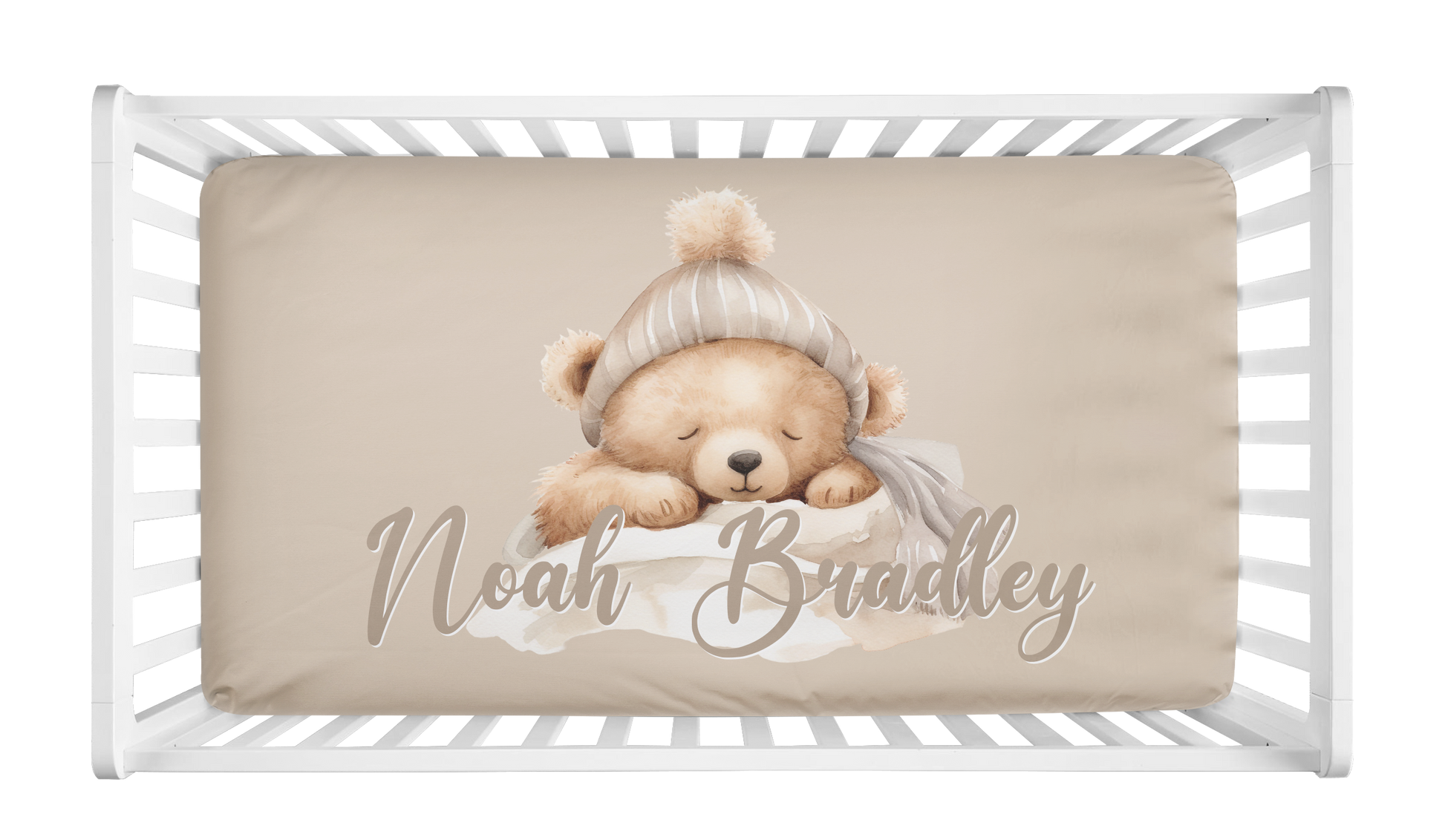 CRIB SHEET - PERSONALIZED NEUTRAL TEDDY BEAR
