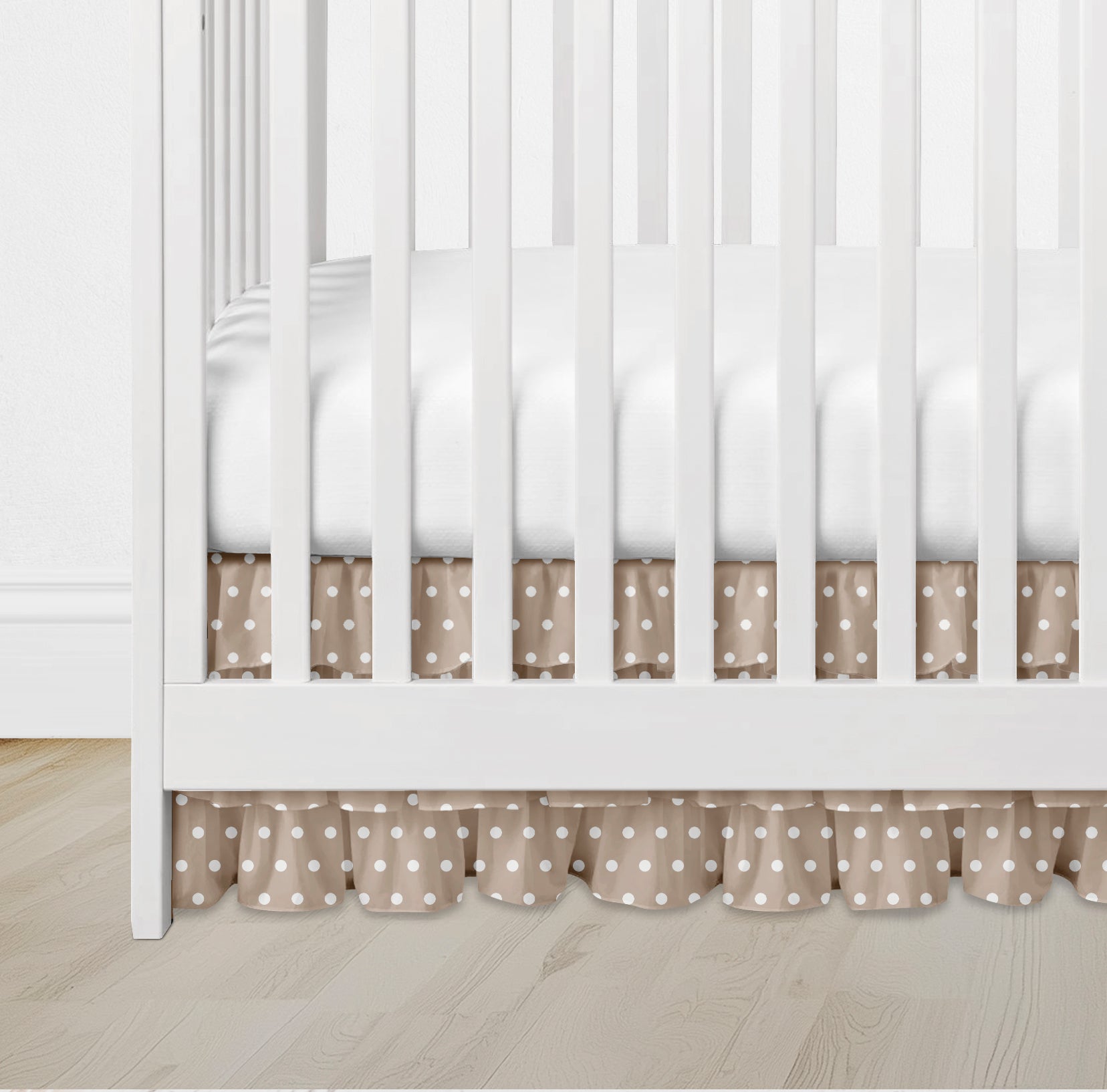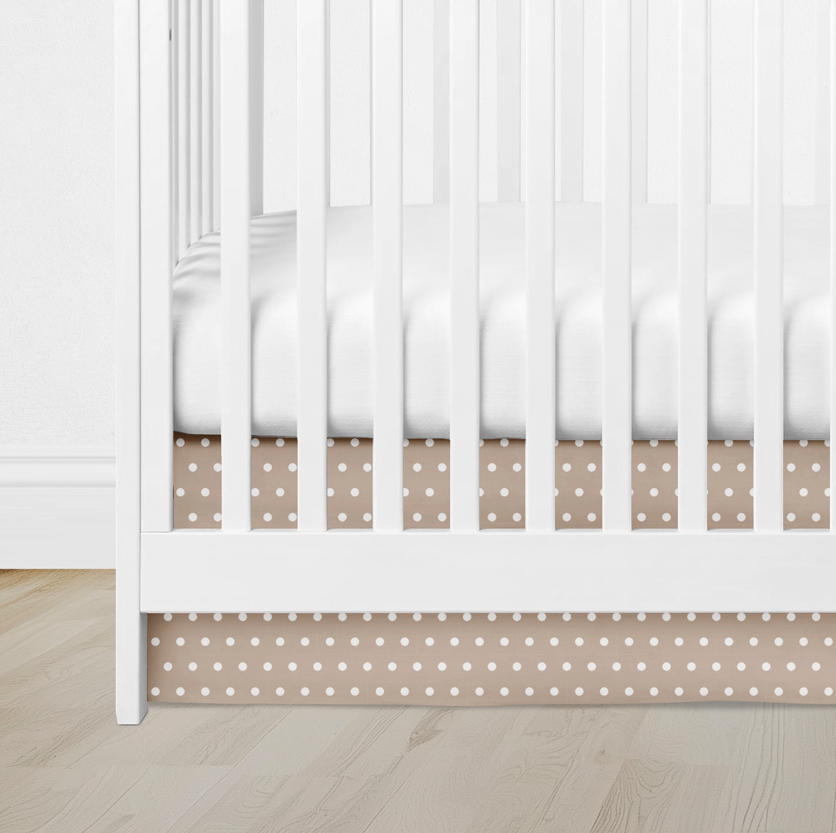 Bring a sweet, classic charm to your nursery with this beige polka dot crib skirt — soft, cozy, and perfectly neutral.