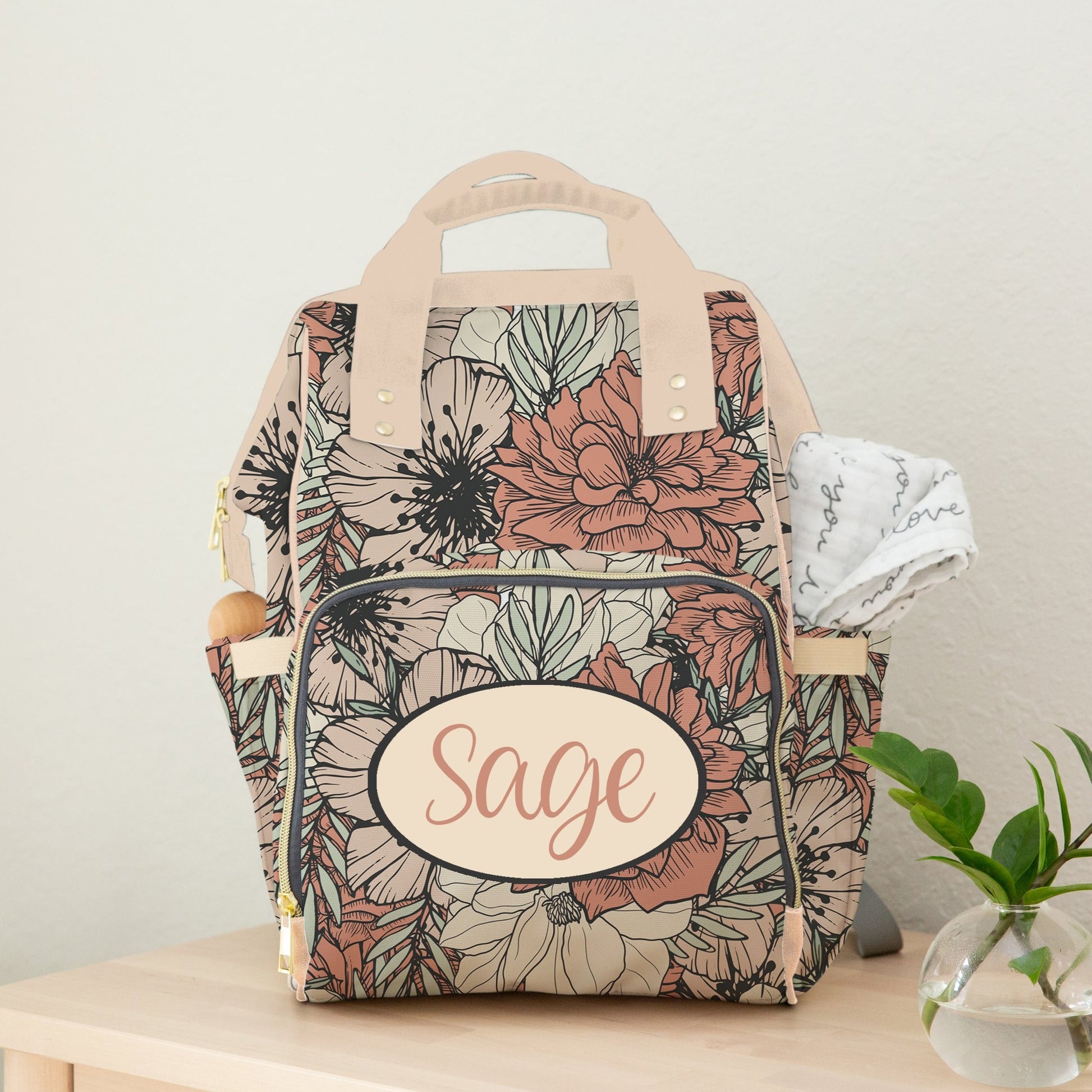 PERSONALIZED DIAPER BAG BACKPACK | PEACH AND CREAM FLORAL