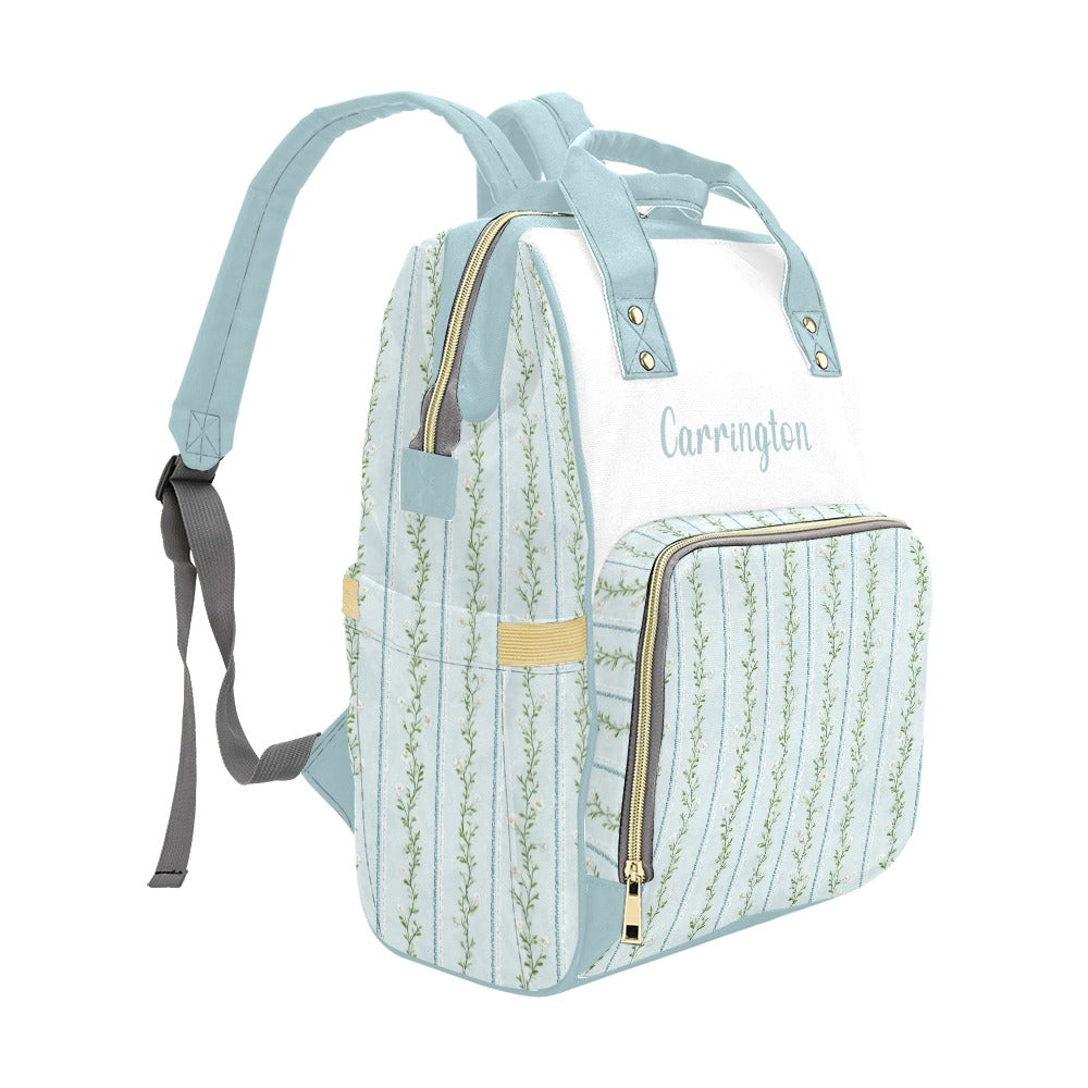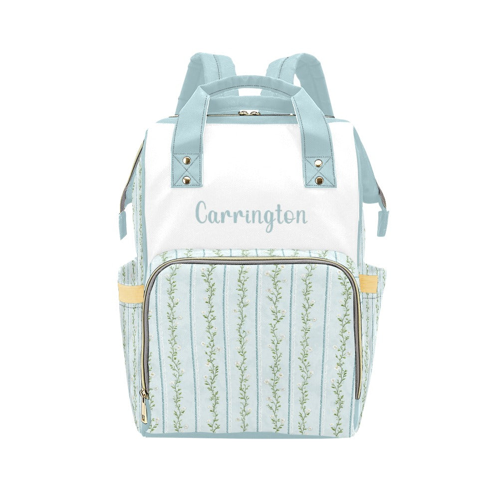 PERSONALIZED DIAPER BAG BACKPACK - BLUE FLORAL STRIPE