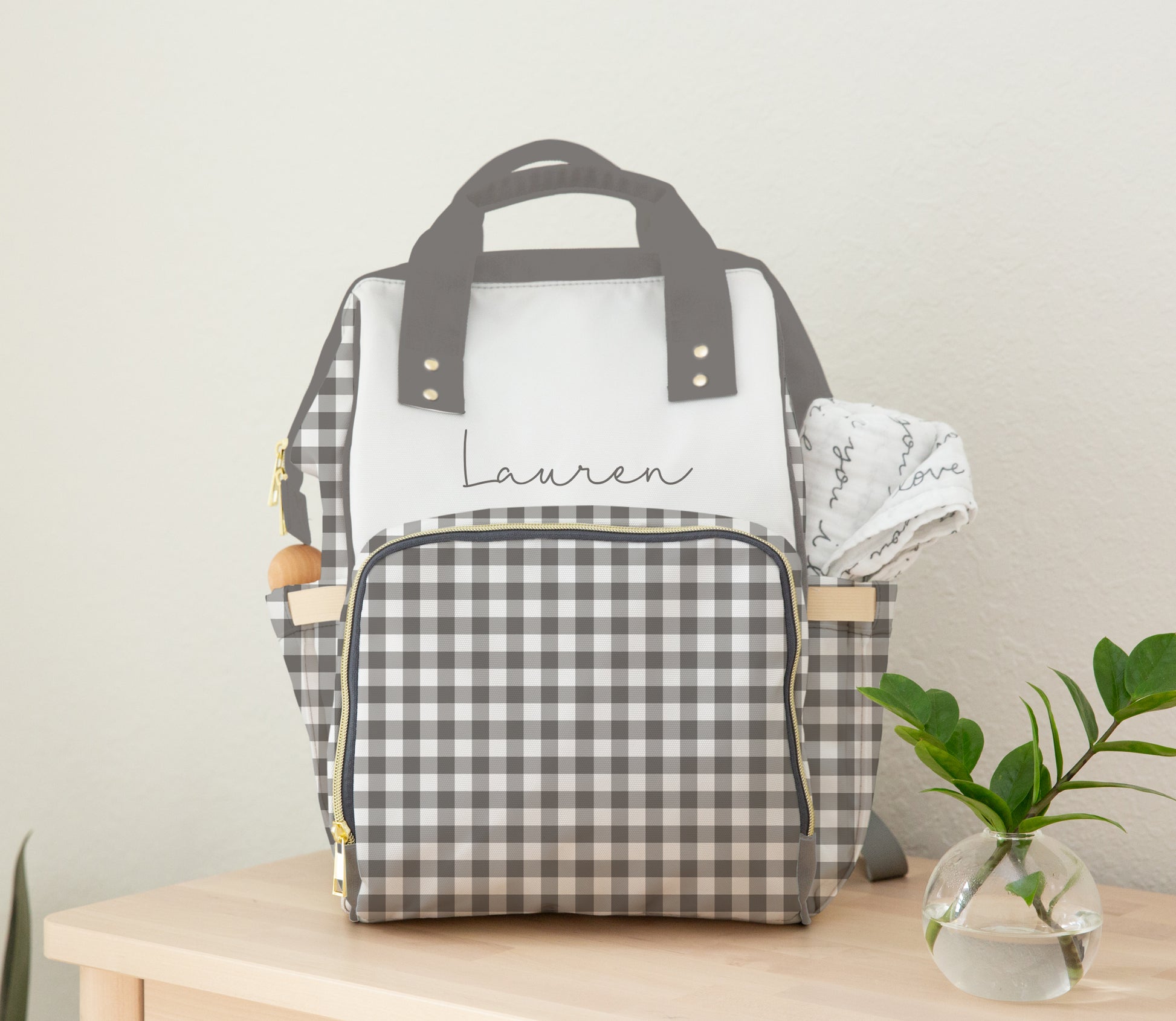 DIAPER BAG BACKPACK - PERSONALIZED NEUTRAL GINGHAM